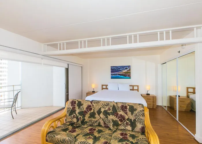 別荘は、ホノルル美術館から2.8km離れた所で、アラモアナ ビーチパーク マジック アイランドからたった1.6kmです。 この宿泊施設は、そこから歩いて20分離れたマジックアイランドなどの自然の景色も近くにあります。 顧客は、そこから500メートル離れたデューク カハナモク ビーチを訪れることもできます。